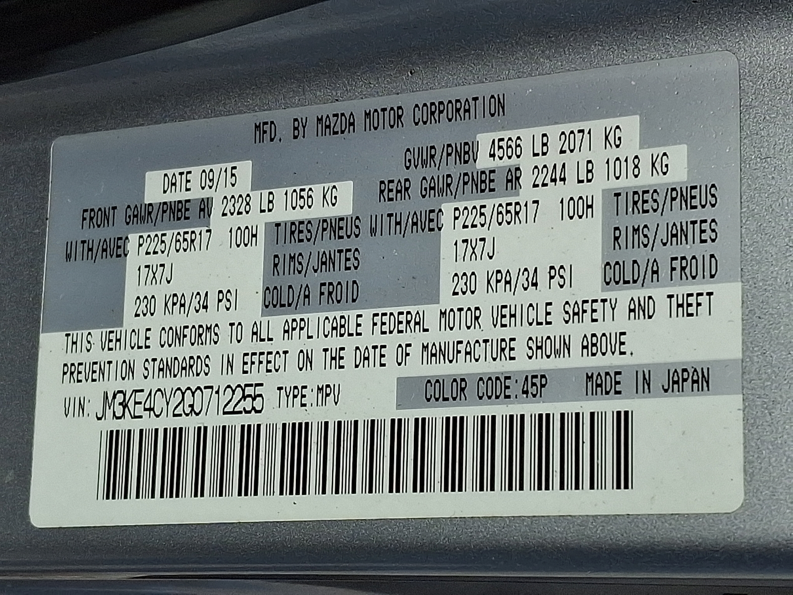 VIN JM3KE4CY2G0712255