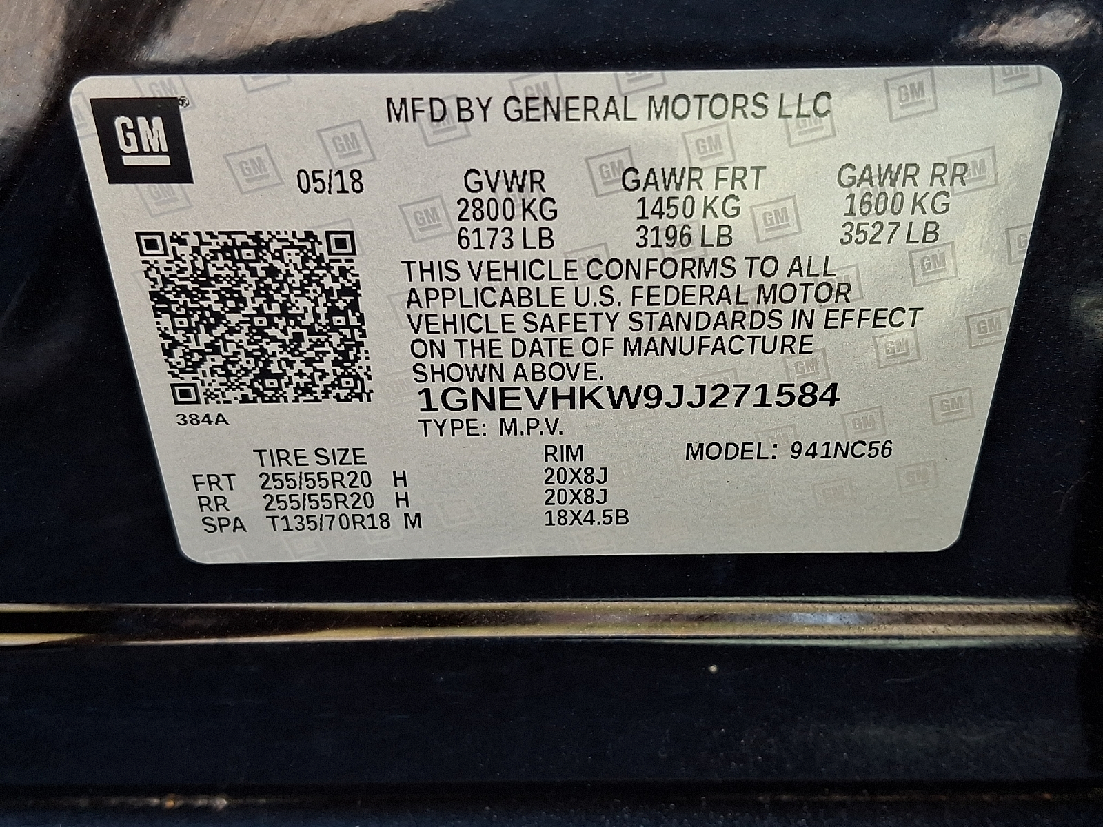 VIN 1GNEVHKW9JJ271584