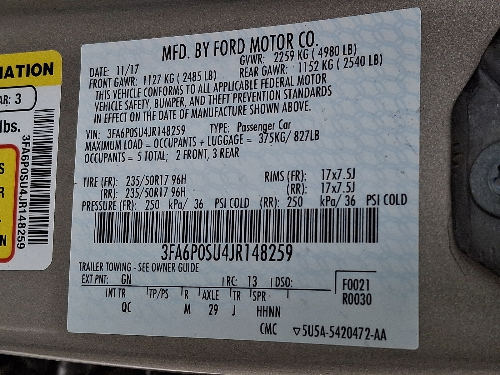 VIN 3FA6P0SU4JR148259