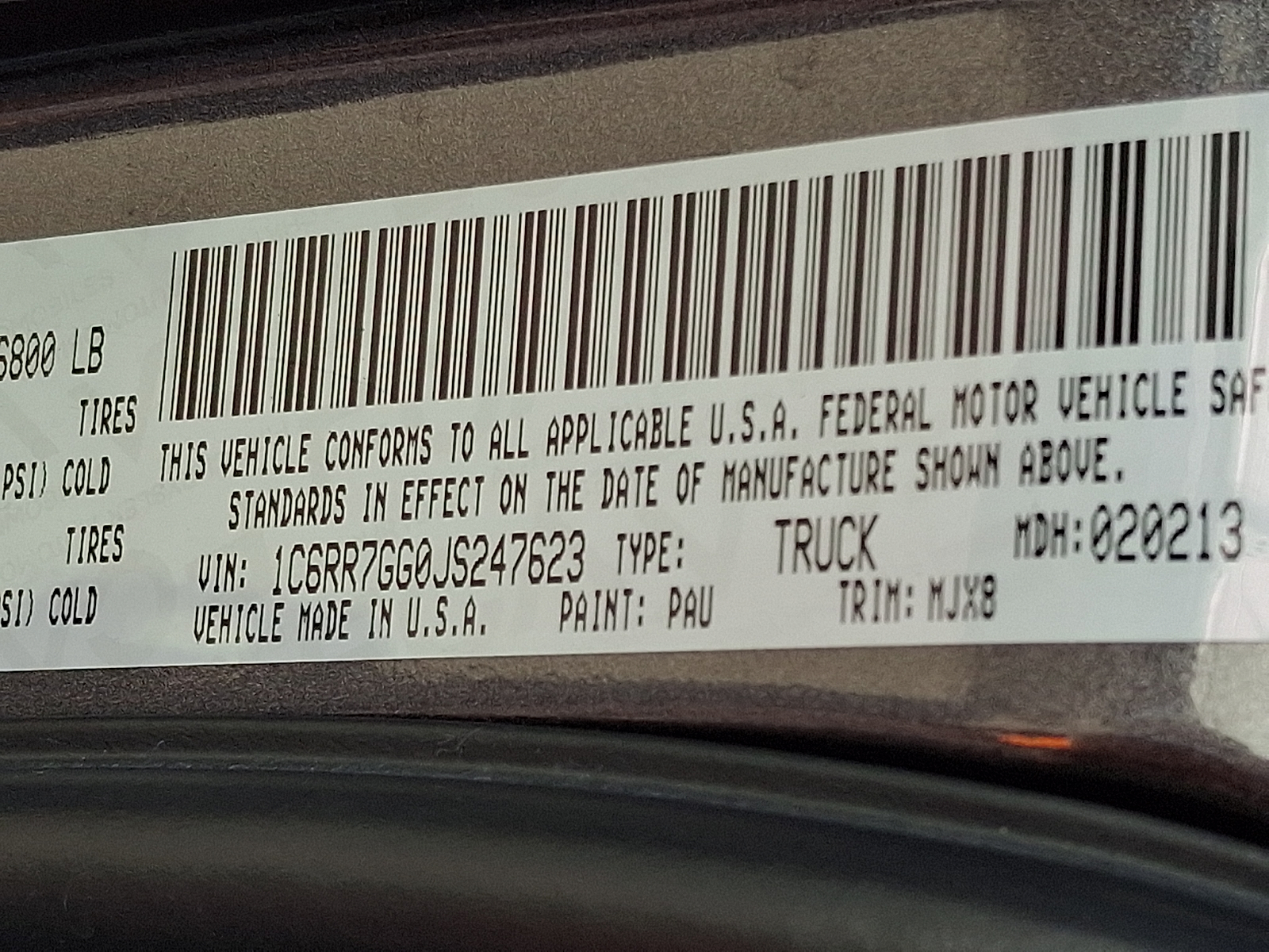 VIN 1C6RR7GG0JS247623