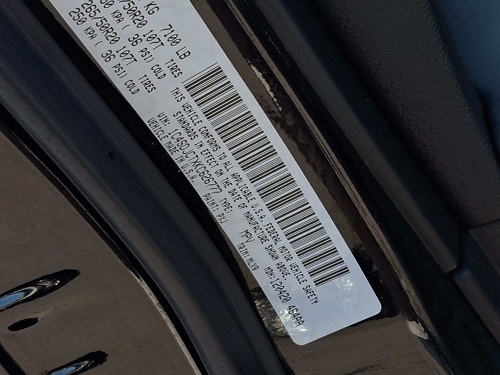VIN 1C4SDJCTXKC626777