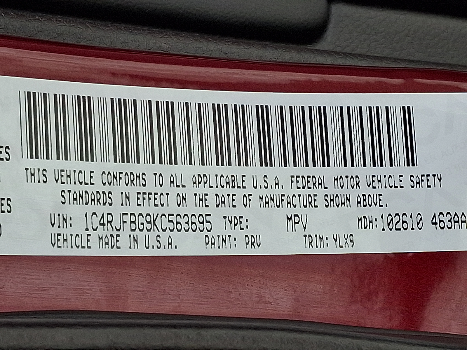VIN 1C4RJFBG9KC563695