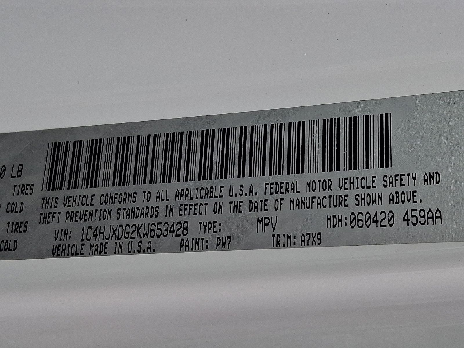 VIN 1C4HJXDG2KW653428