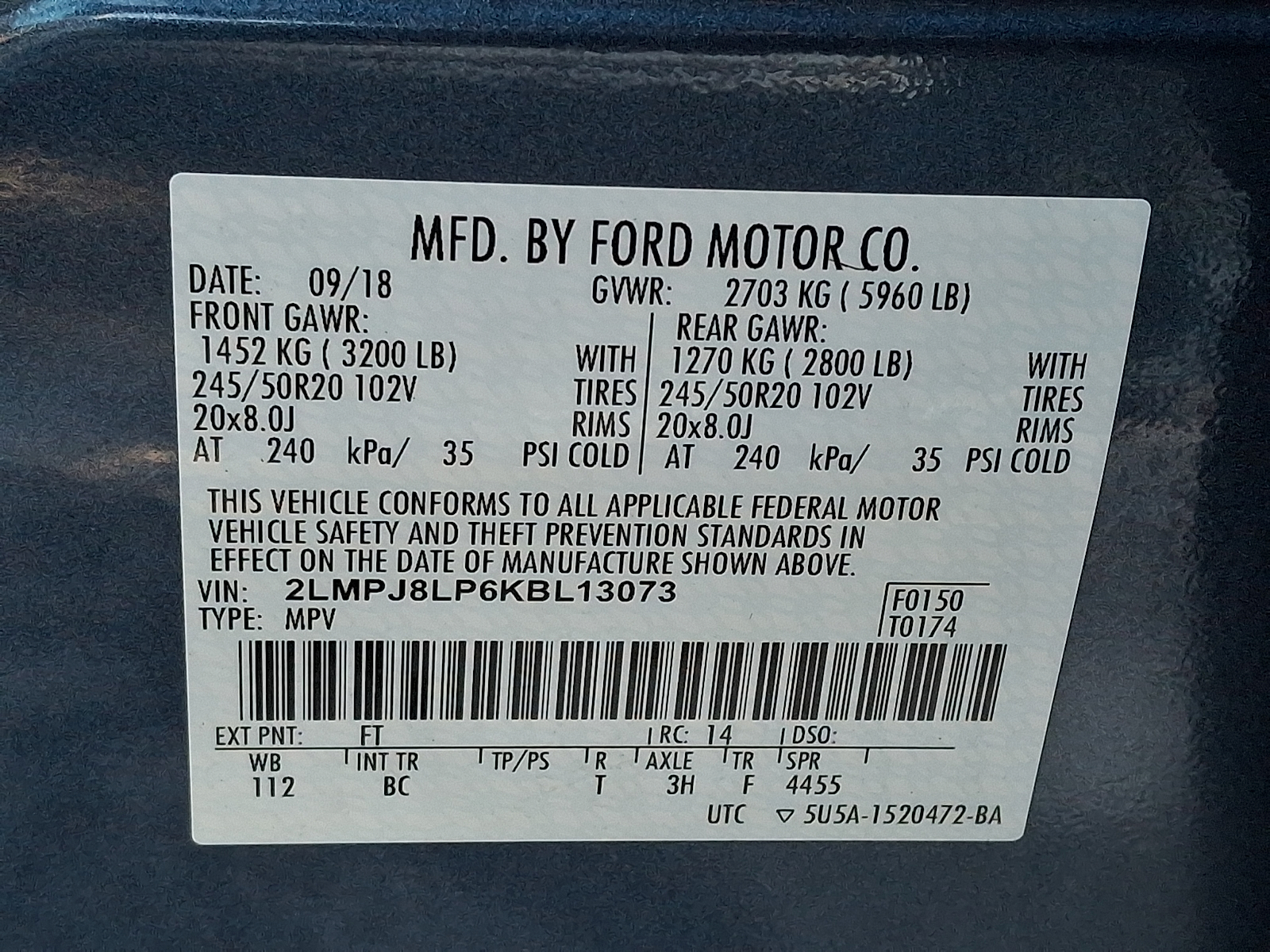 VIN 2LMPJ8LP6KBL13073