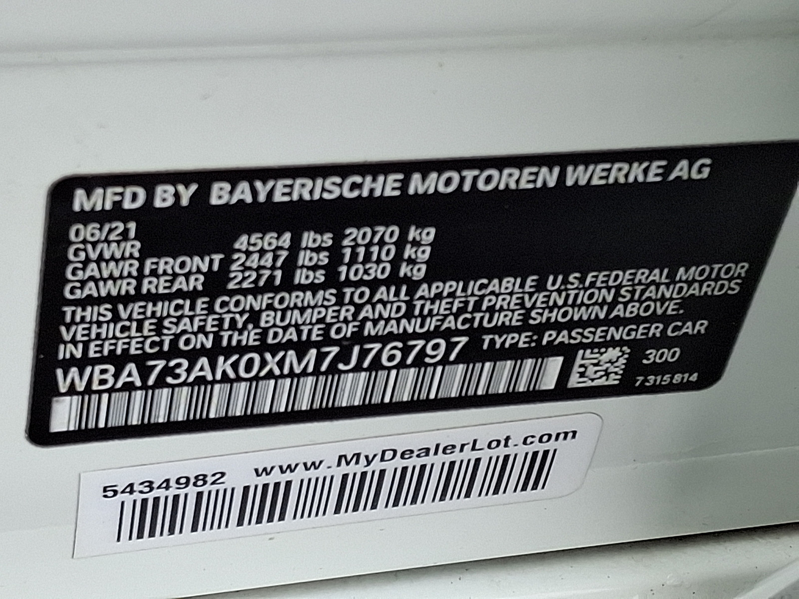VIN WBA73AK0XM7J76797