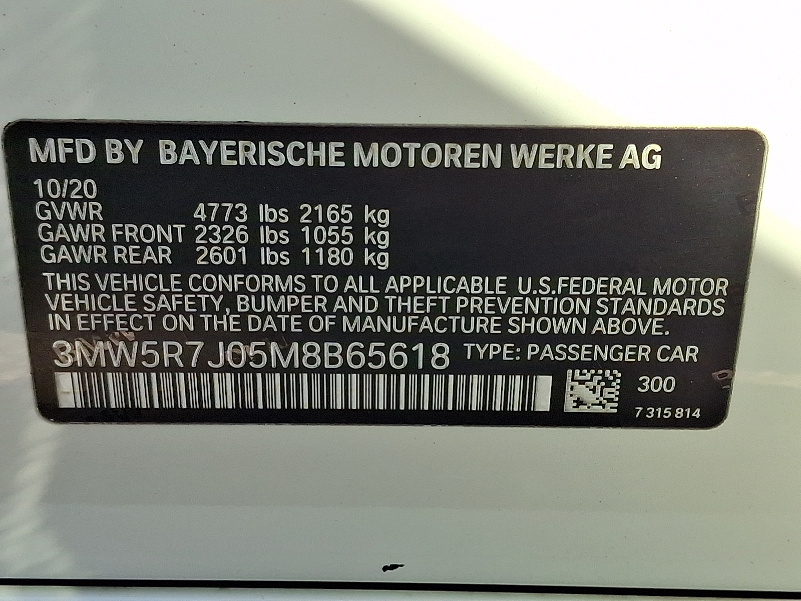 VIN 3MW5R7J05M8B65618