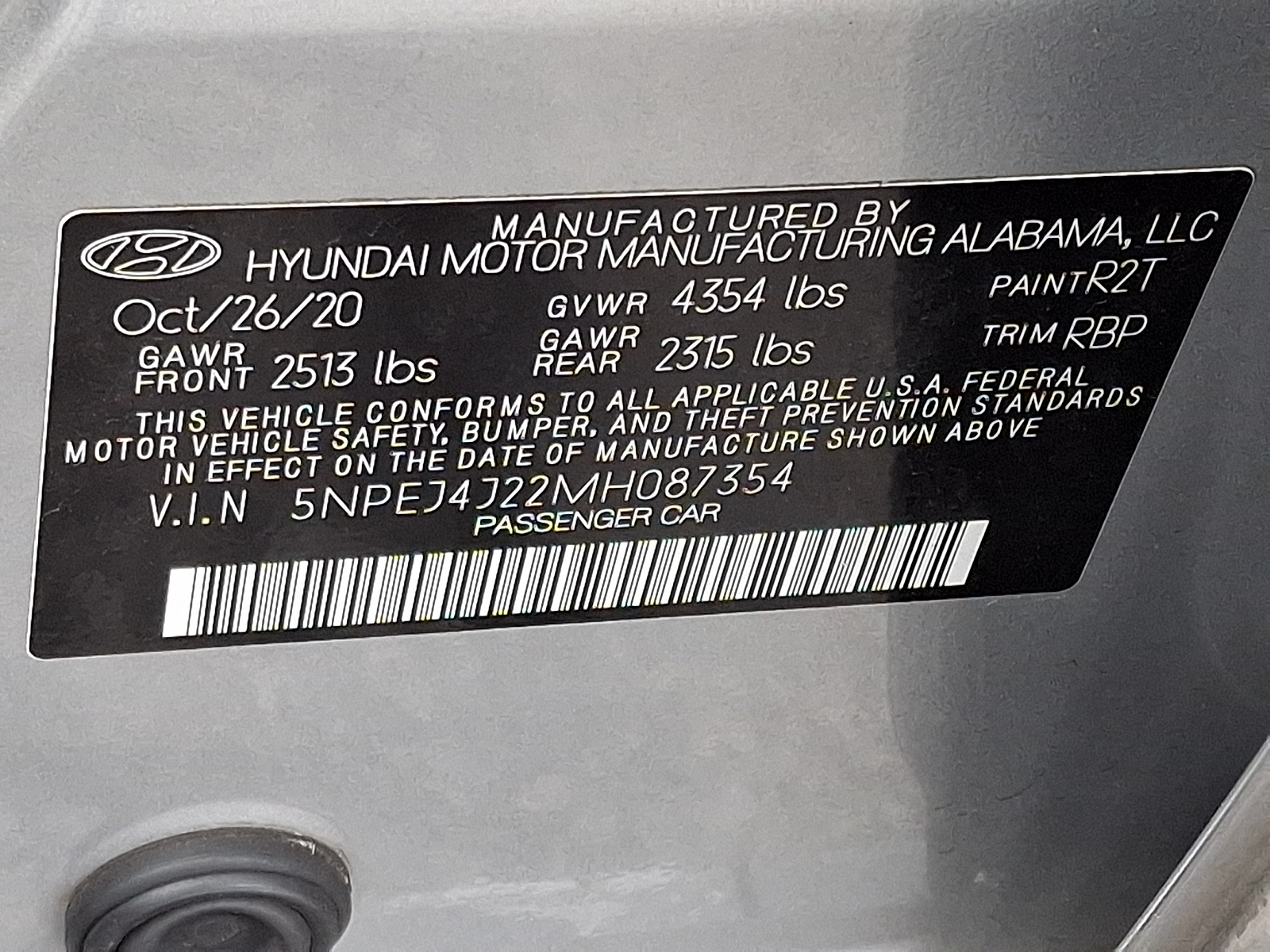 VIN 5NPEJ4J22MH087354