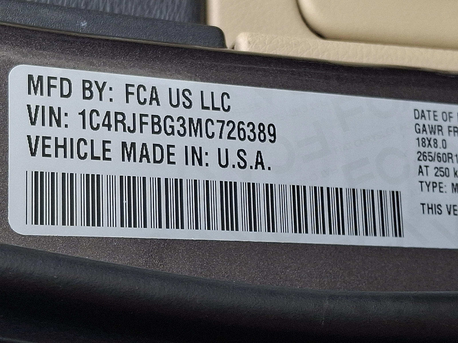 VIN 1C4RJFBG3MC726389