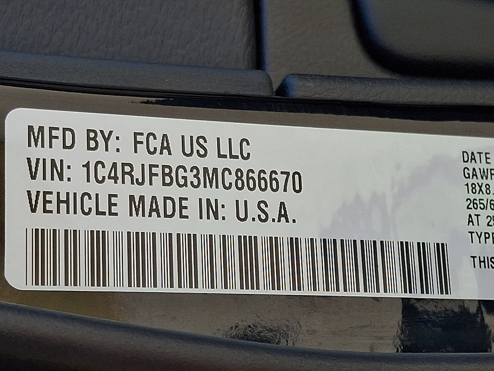 VIN 1C4RJFBG3MC866670