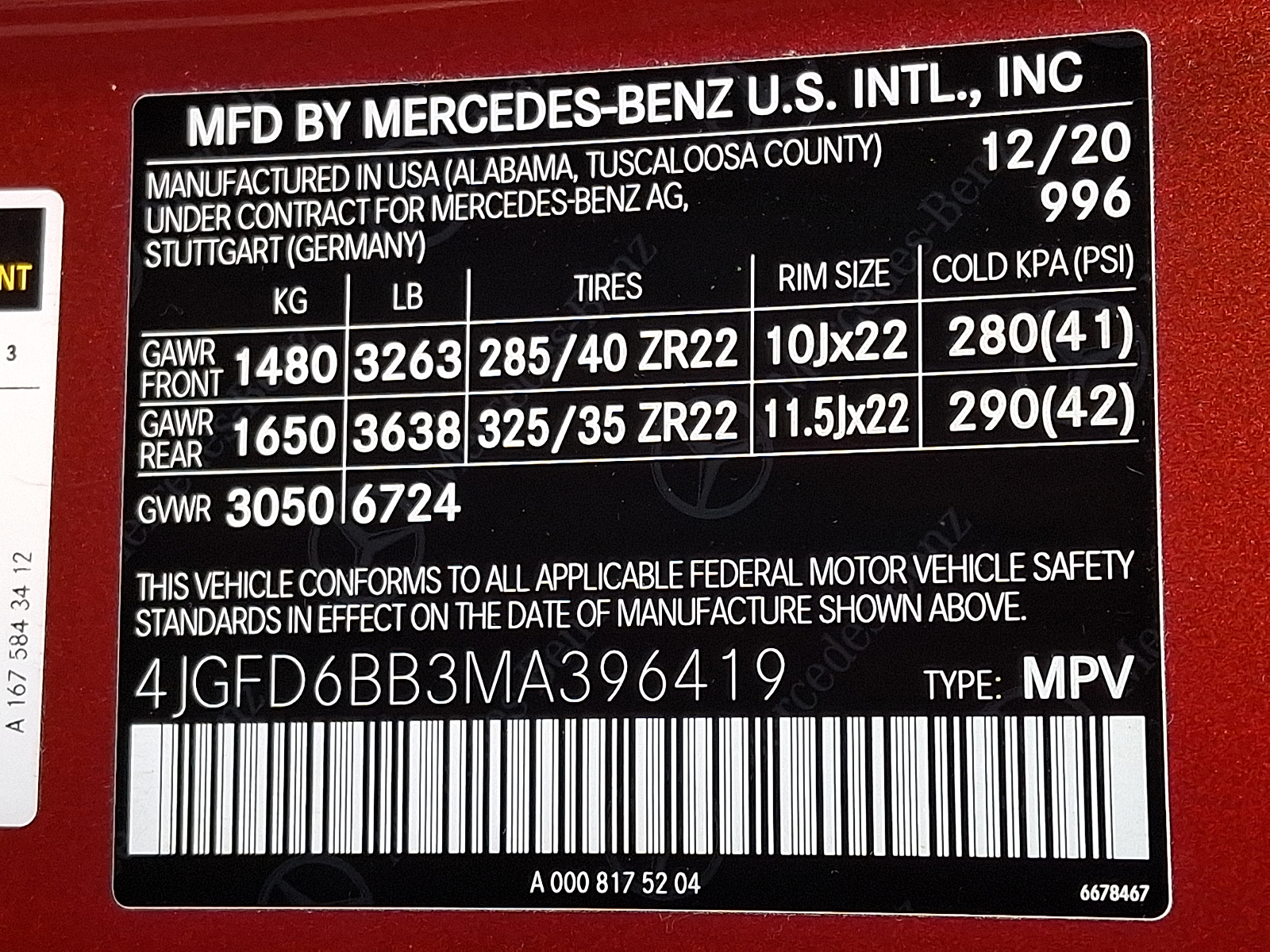 VIN 4JGFD6BB3MA396419