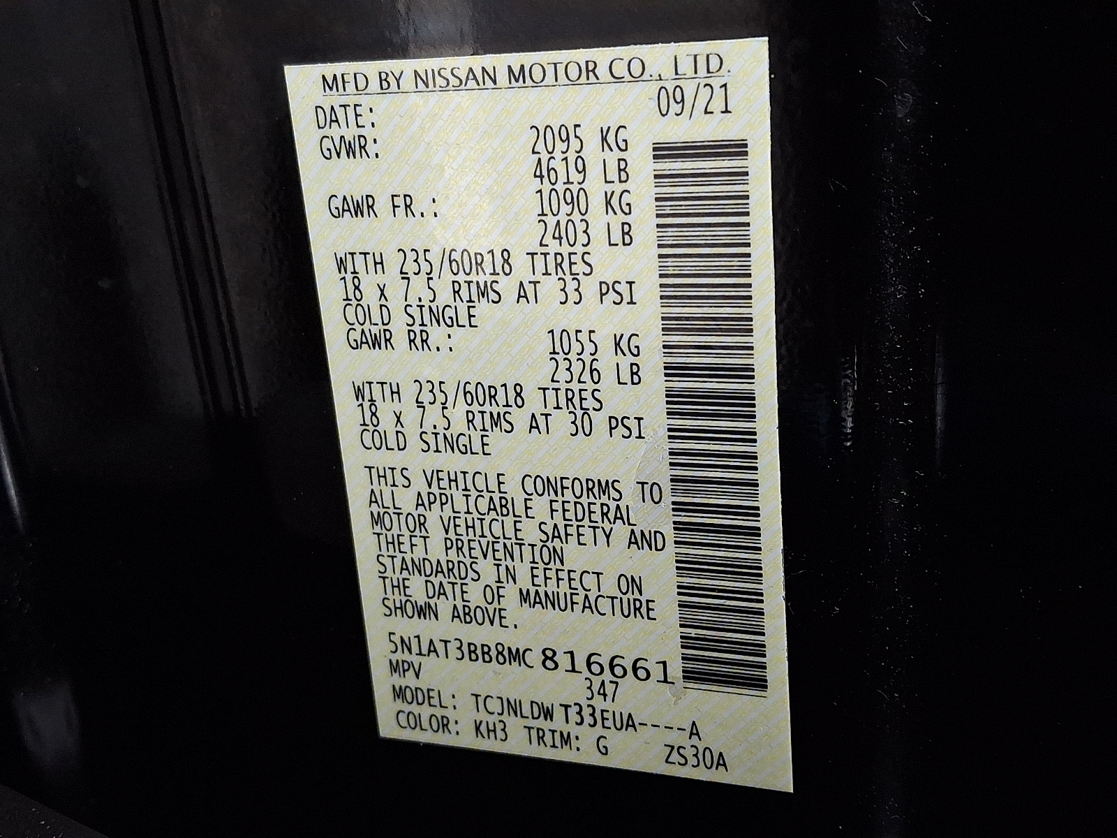 VIN 5N1AT3BB8MC816661