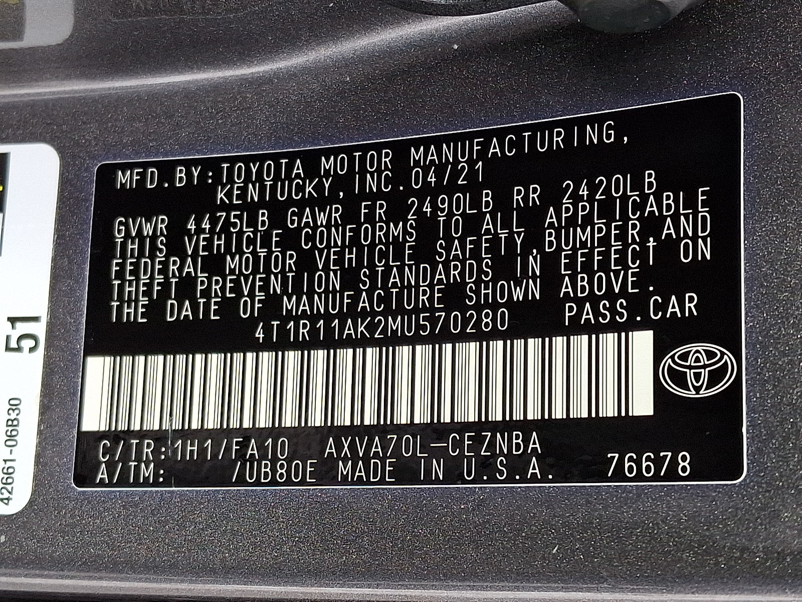VIN 4T1R11AK2MU570280
