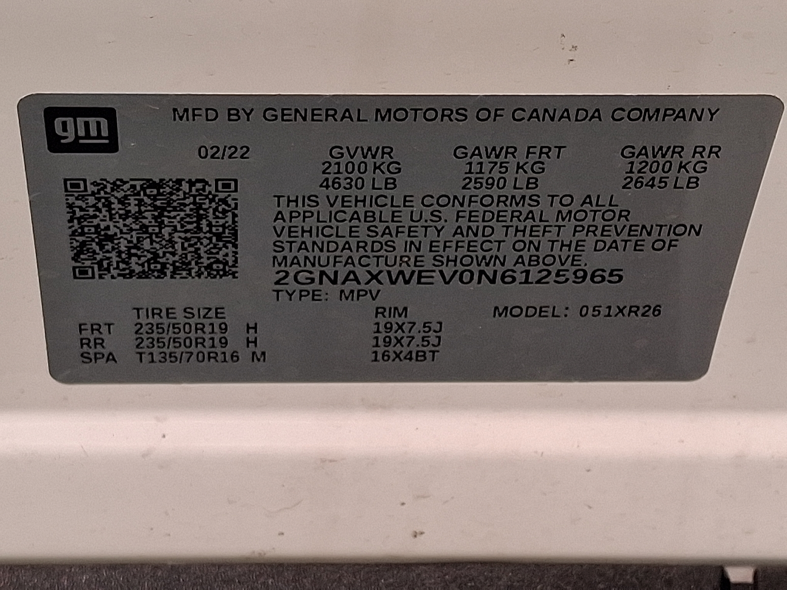 VIN 2GNAXWEV0N6125965