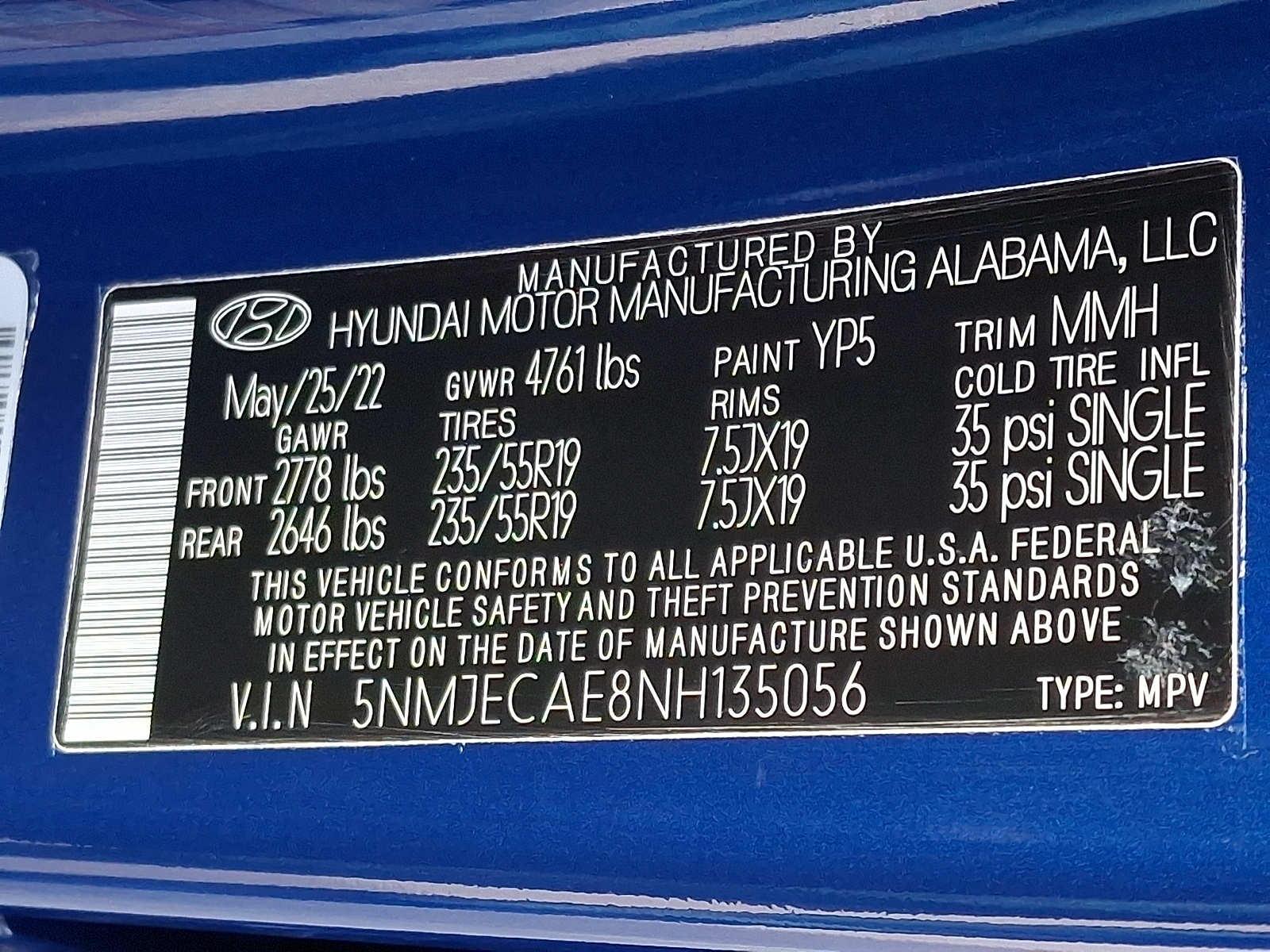VIN 5NMJECAE8NH135056