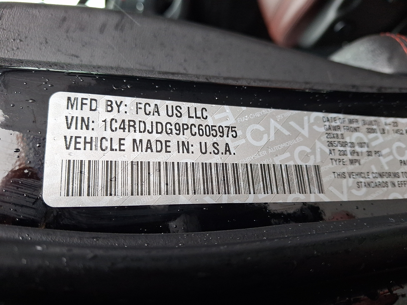VIN 1C4RDJDG9PC605975