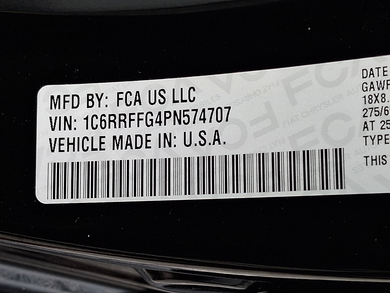 VIN 1C6RRFFG4PN574707